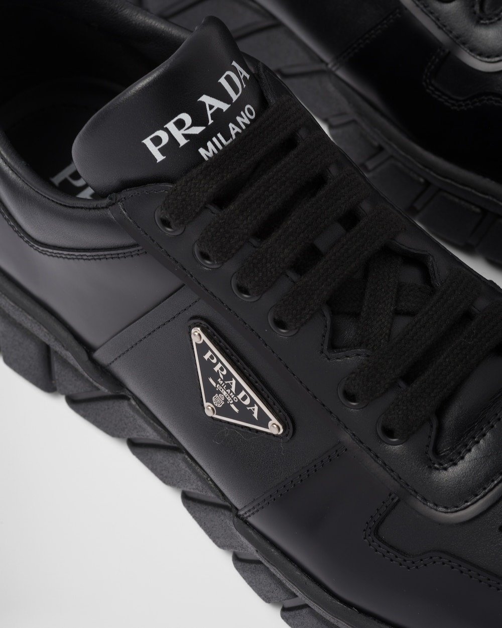 • Enameled-triangle appliqué on the upper and silk-screen Prada Milano logo on the tongue