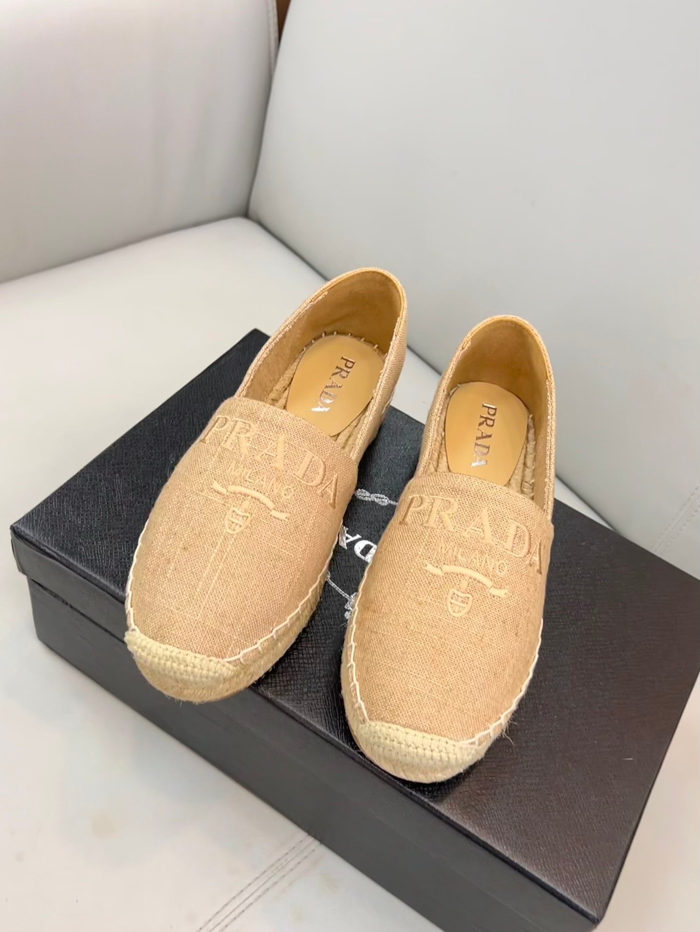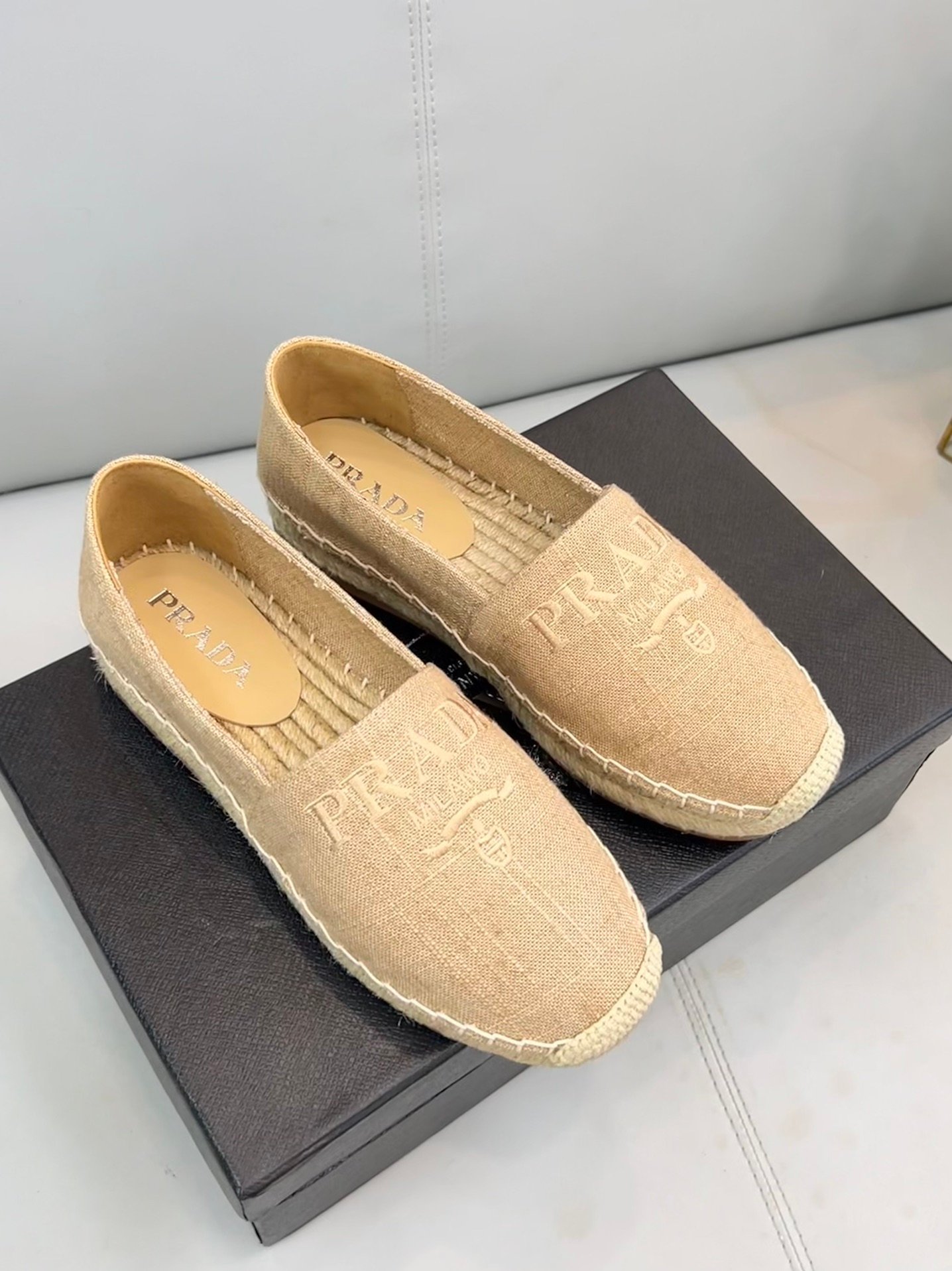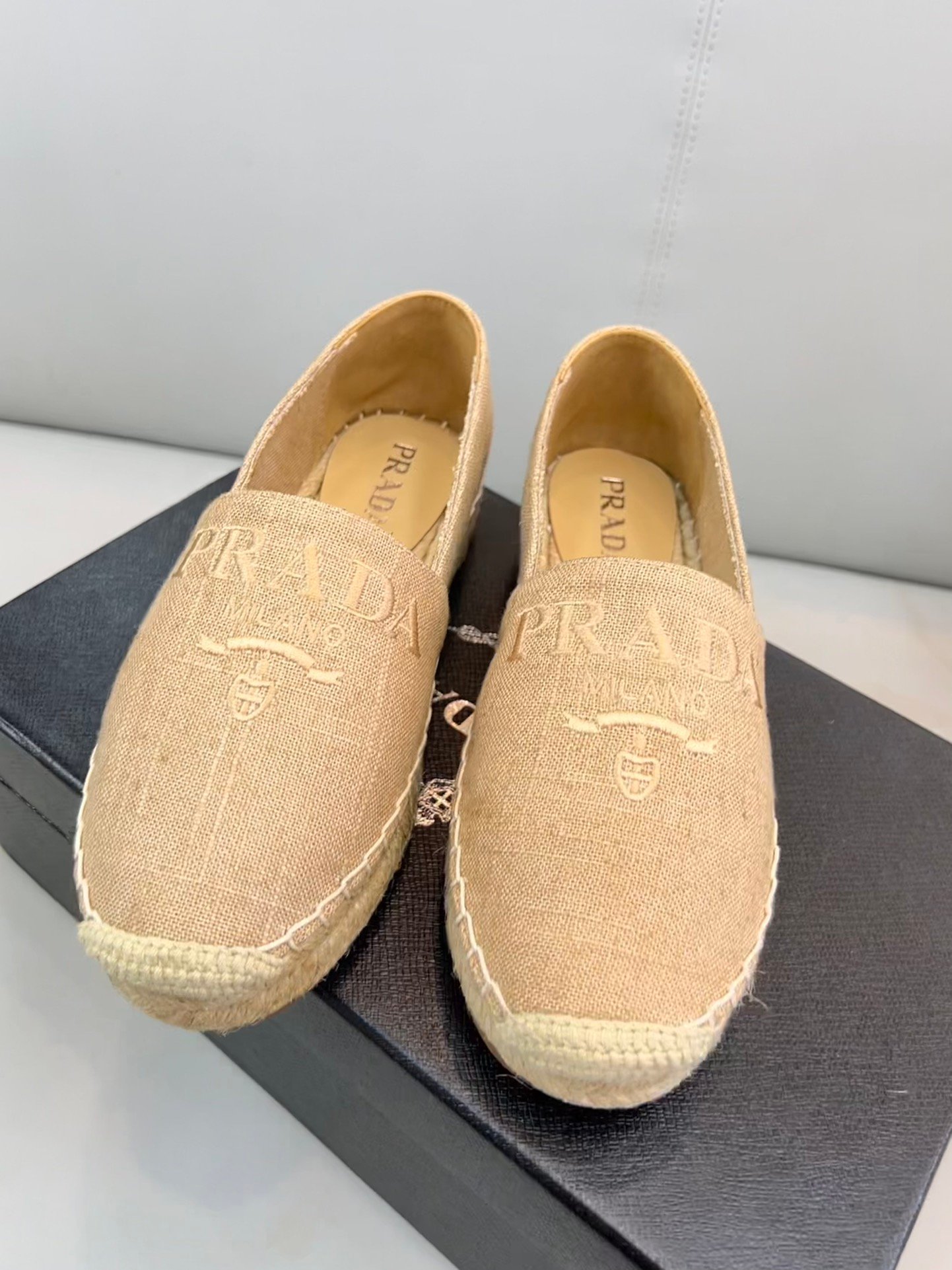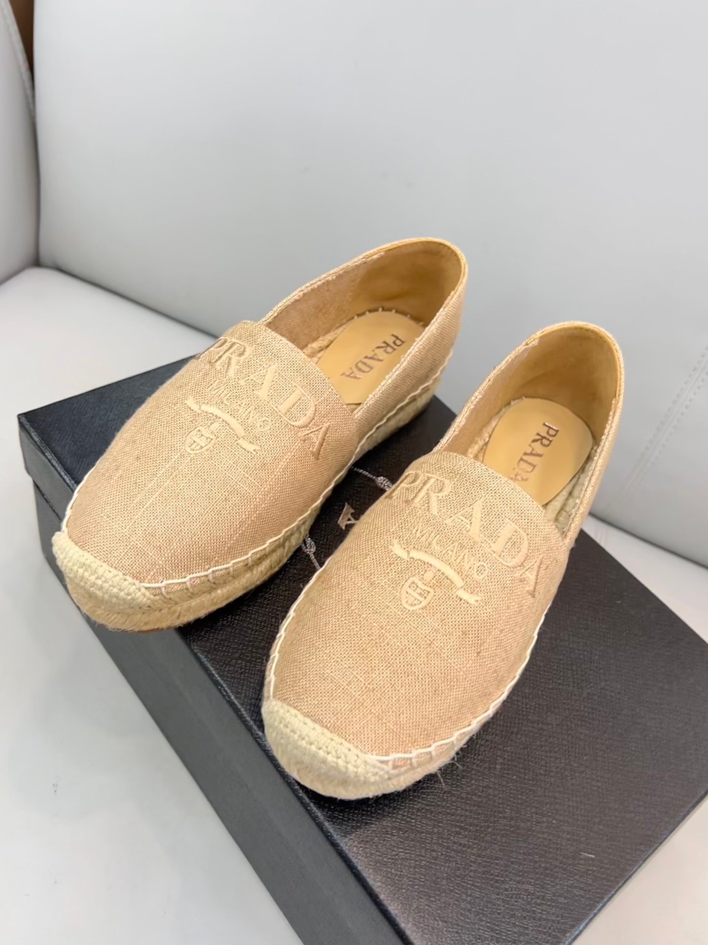 Prada Linen Espadrilles Beige For Women 0.8in/20mm PRD 1S841M_376_F0065_F_020