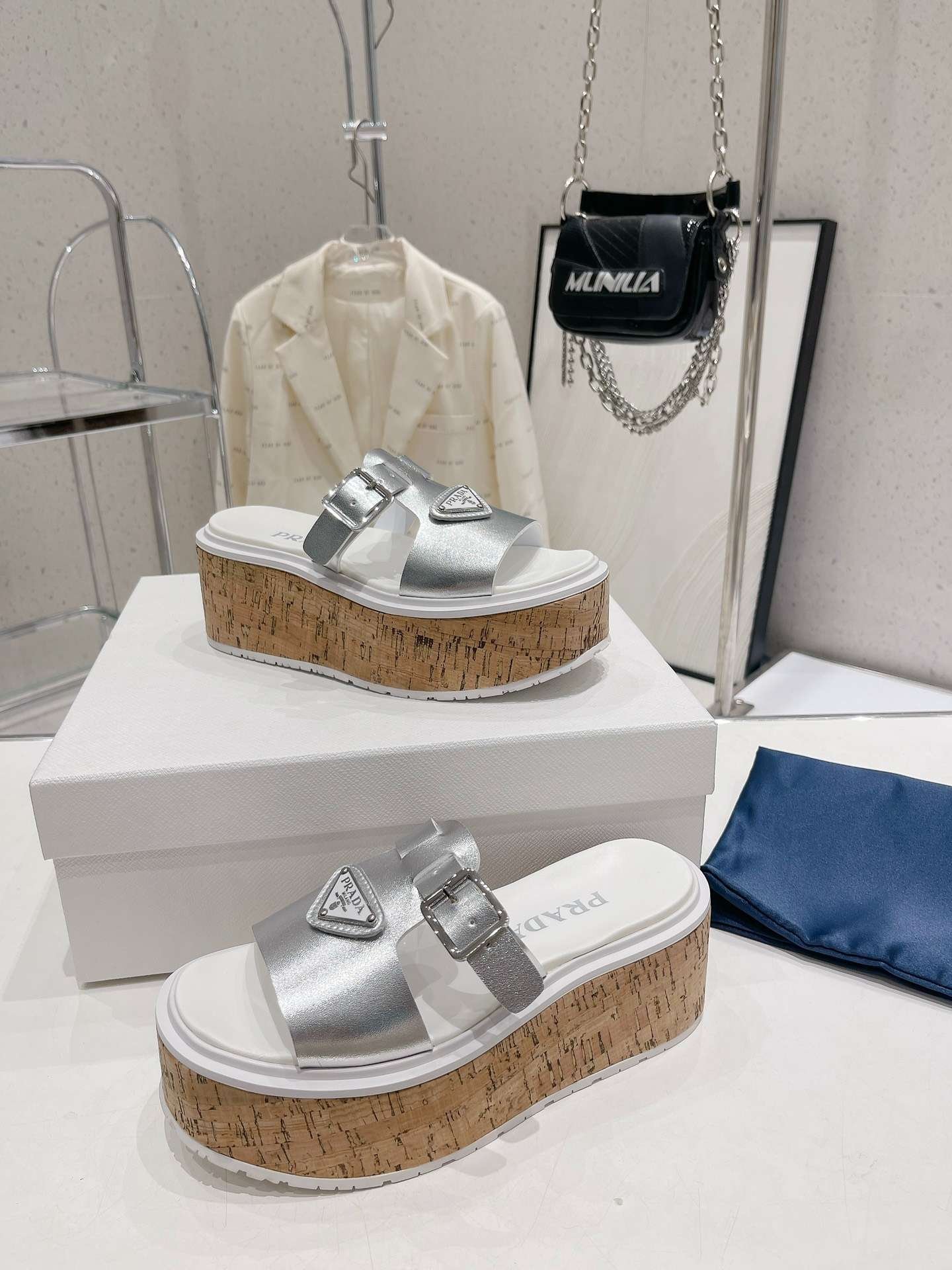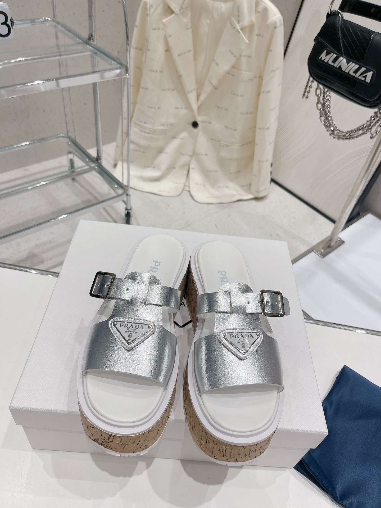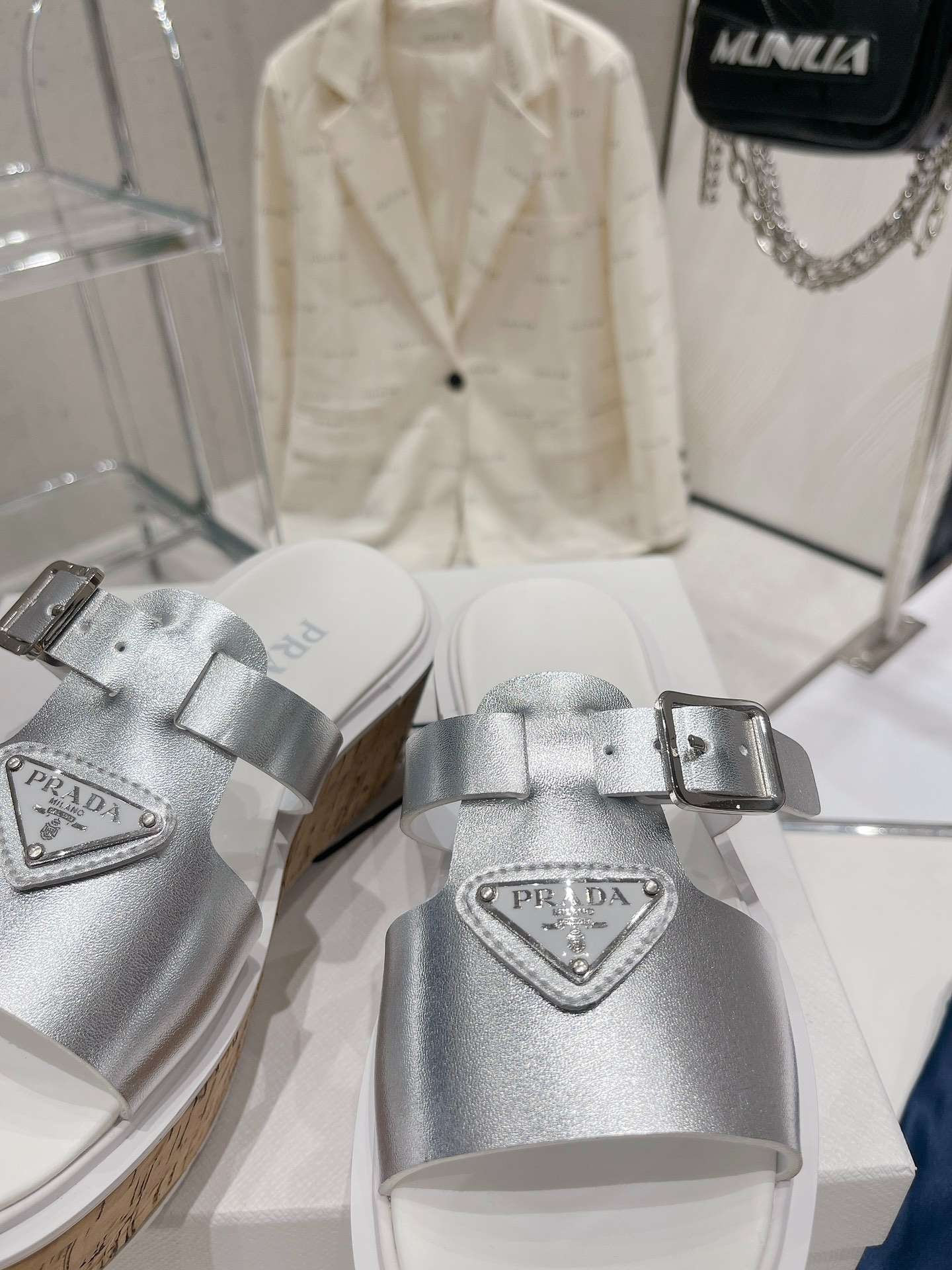 Be the first to review “Prada Rubber Wedge Platform Slippers Silver For Women”