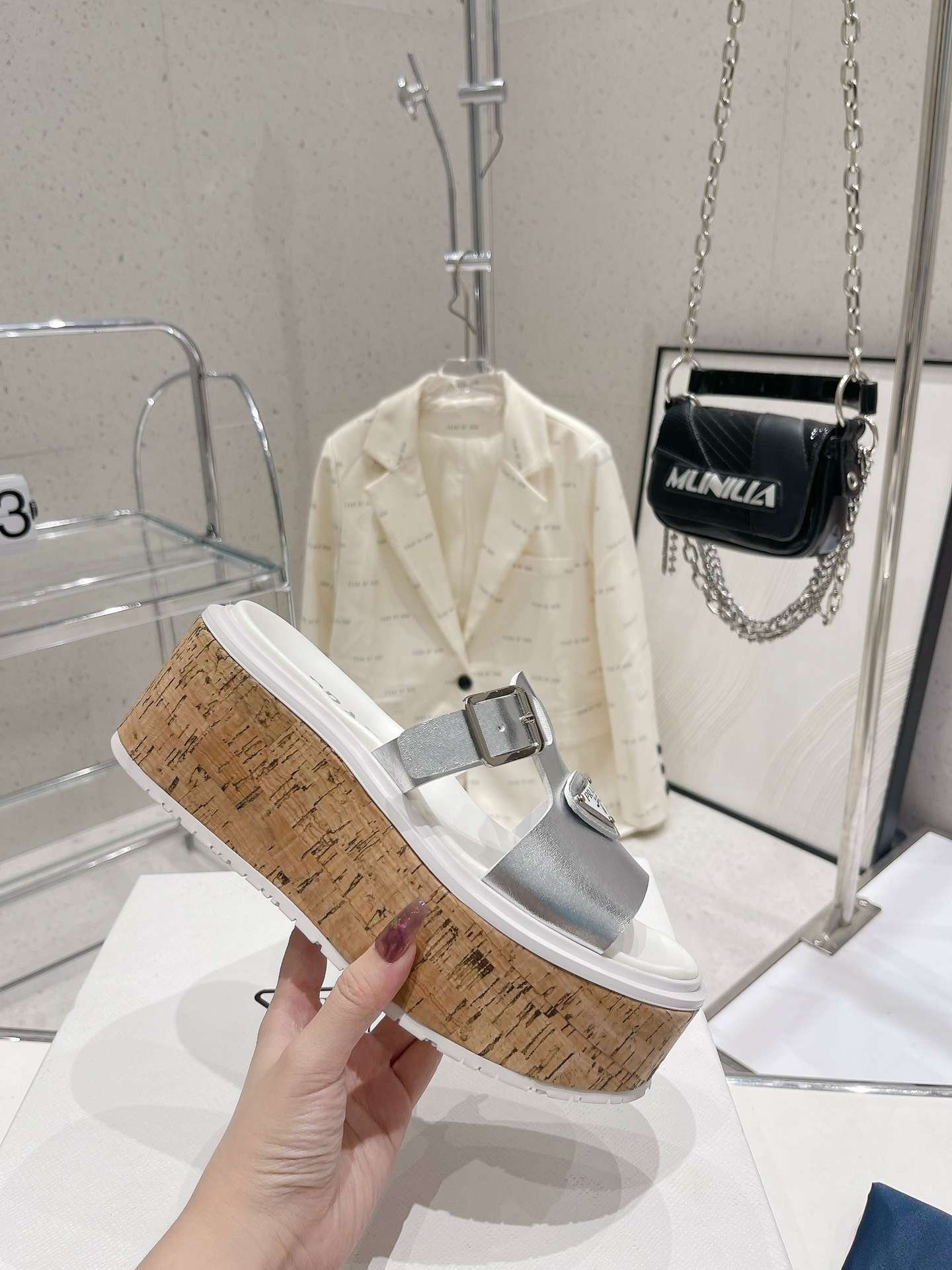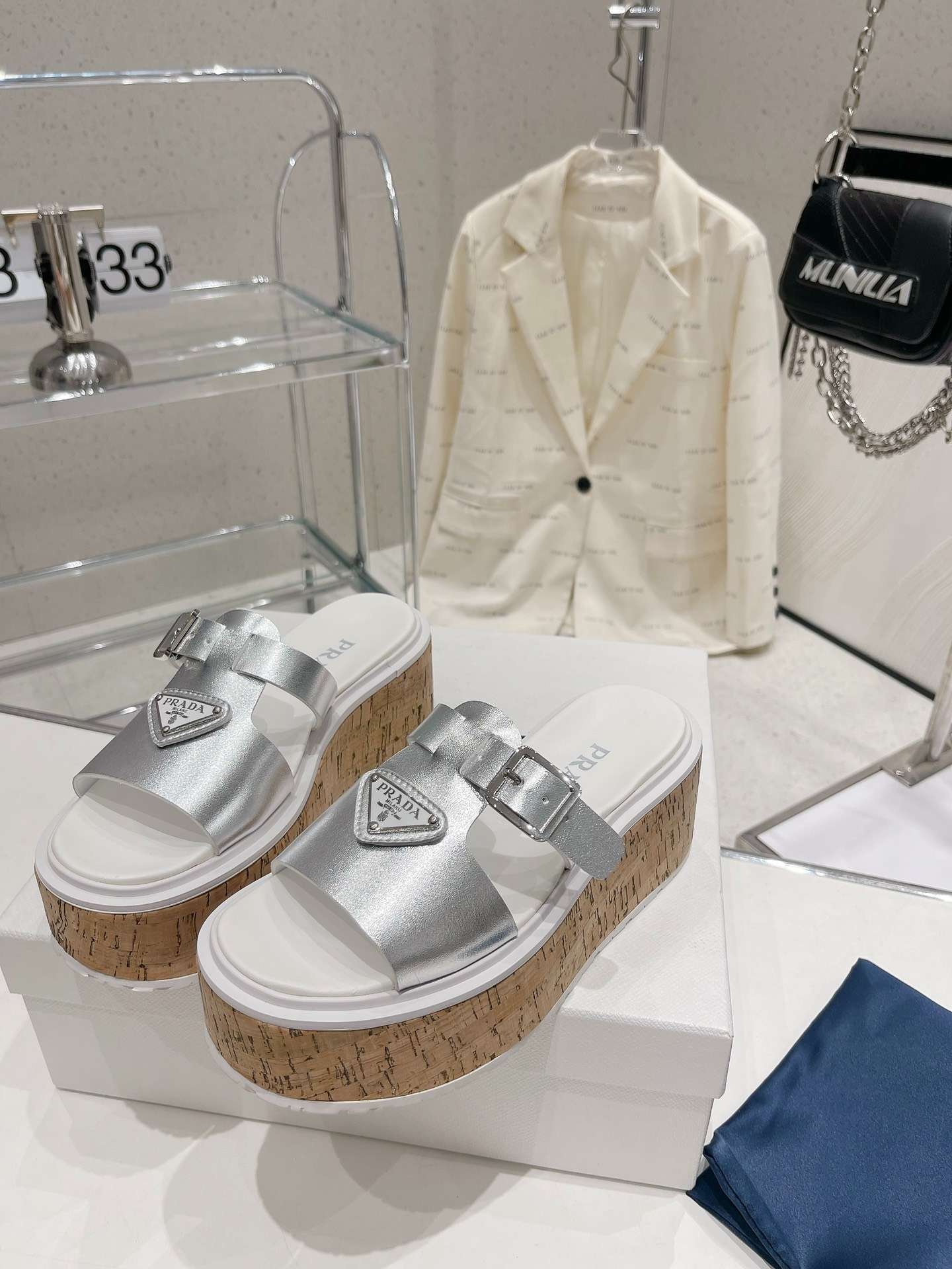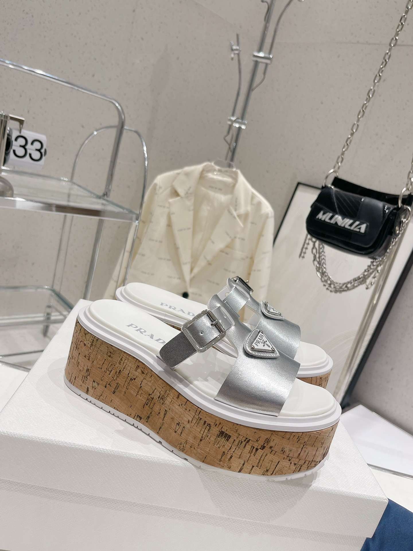Be the first to review “Prada Rubber Wedge Platform Slippers Silver For Women”