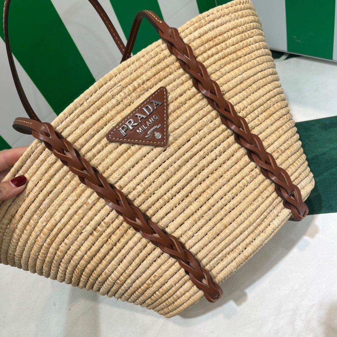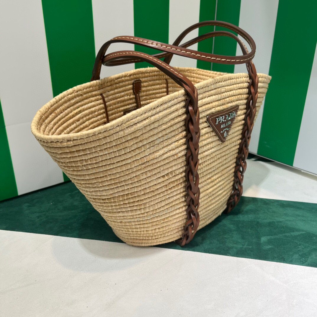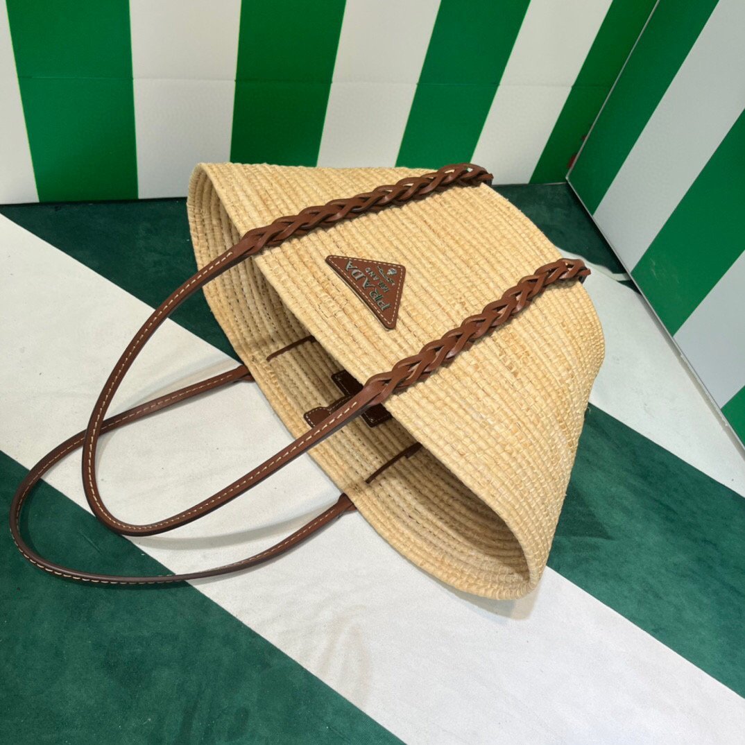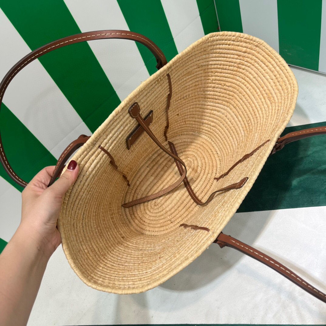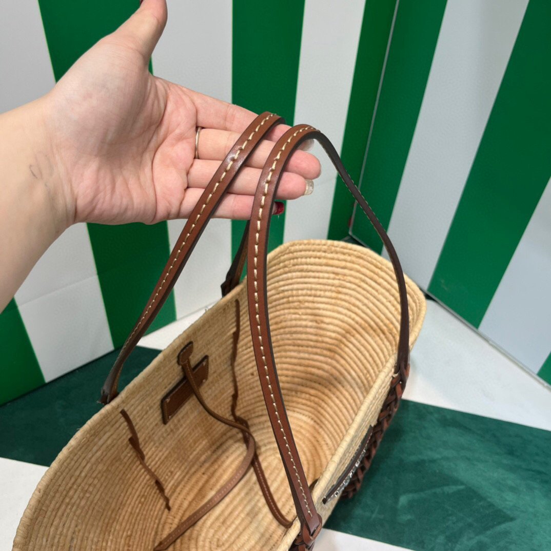 Straw And Shoulder Tote Bag In Beige For Women 9.8 in/25cm