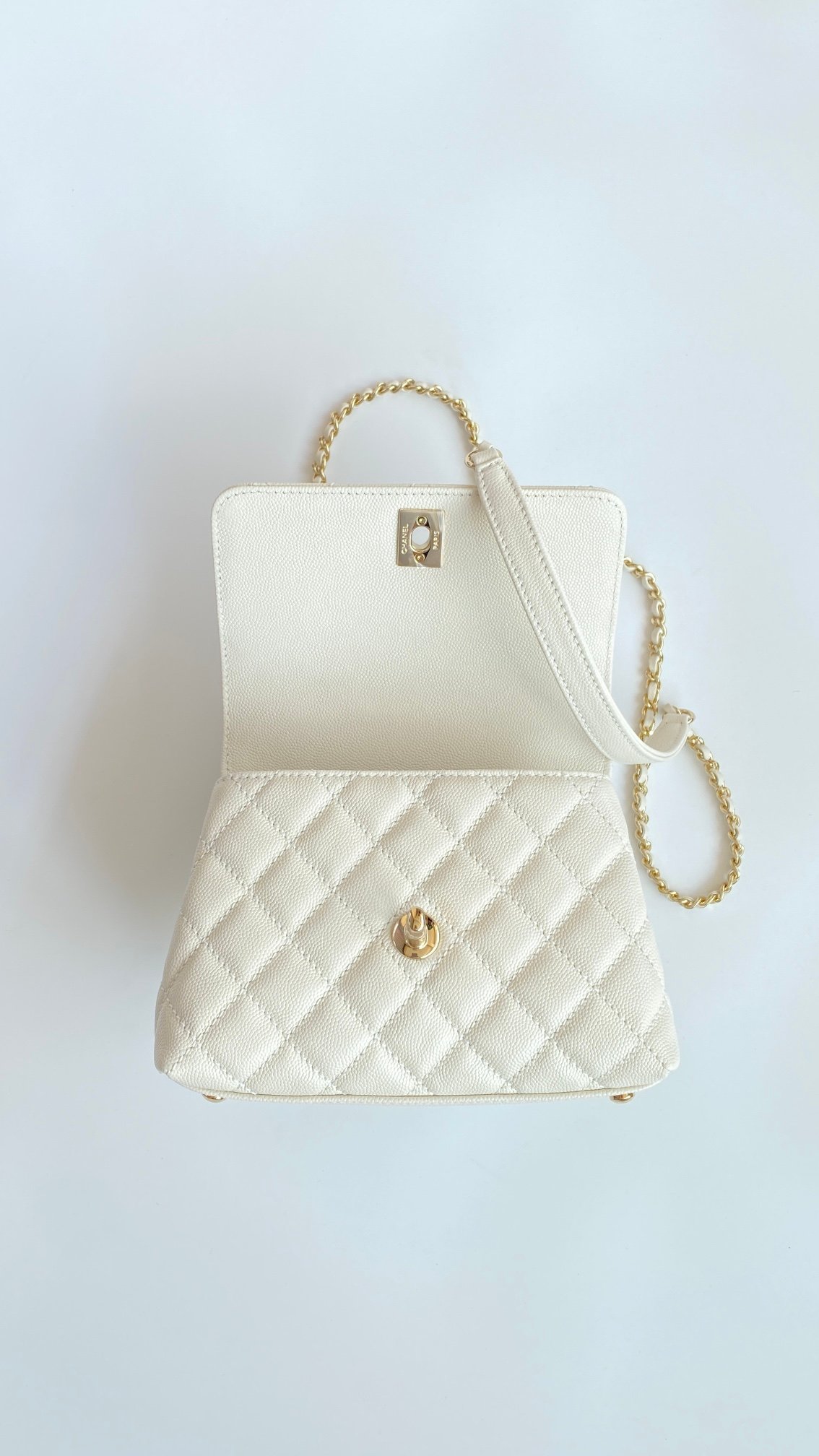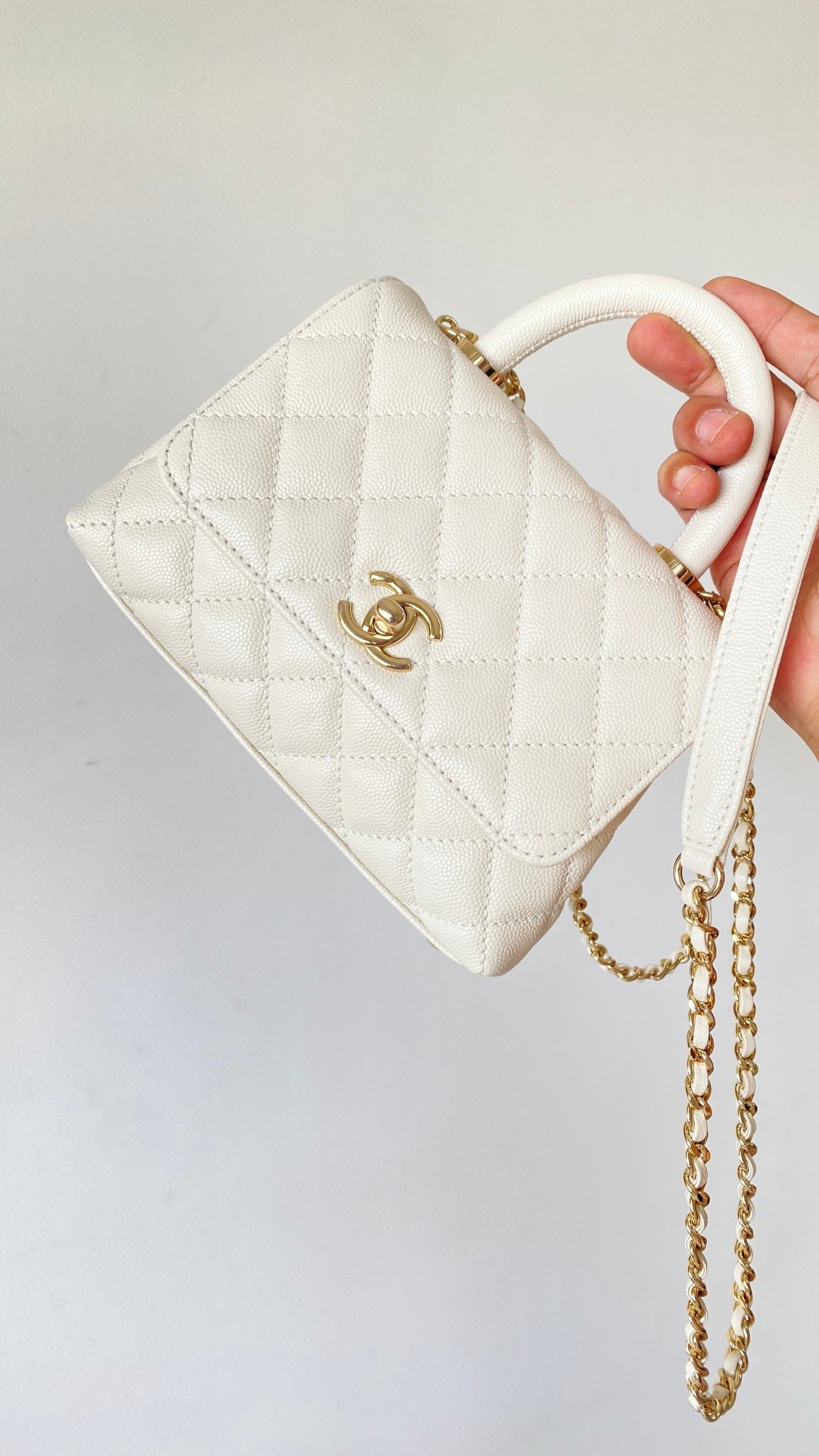 [True-to-ORIGINAL] Chanel Coco Handle Mini Bag White For Women 5,1in/13cm