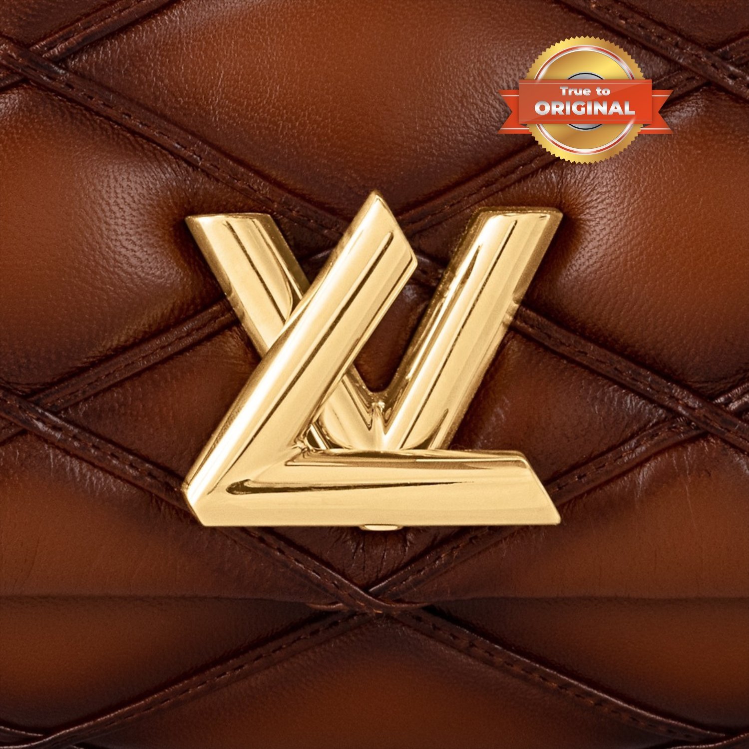 Nicolas Ghesquiere explores new techniques to embellish the GO-14 MM handbag. Here padded lambskin is quilted, and a refined toasted effect is applied by hand, giving it a futuristic allure. The top handle and adjustable chain both detachable enable carry options. It’s signed with the House’s emblematic LV Twist lock.