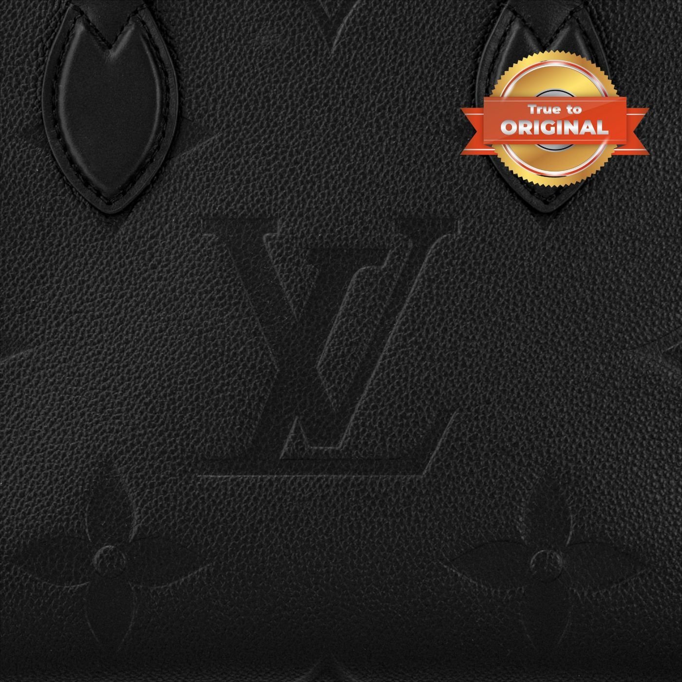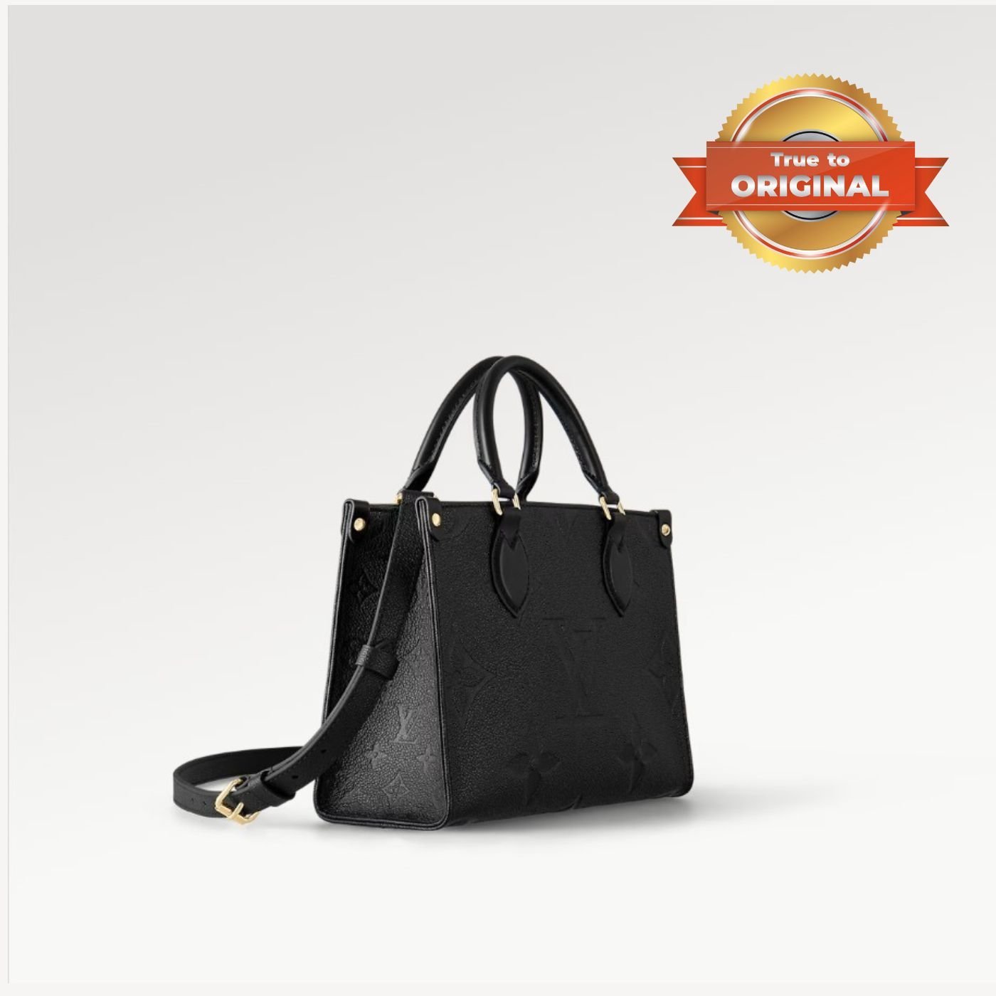 - Inspired by Louis Vuitton’s famous Sac Plat from 1968, the Onthego PM tote is fashioned in Monogram Empreinte, embossed with a subtle embossed Giant Monogram pattern. This smaller version of the original Onthego fits essentials such as an iPad Mini. Articulated top handles and an adjustable removable strap offer a variety of carry options