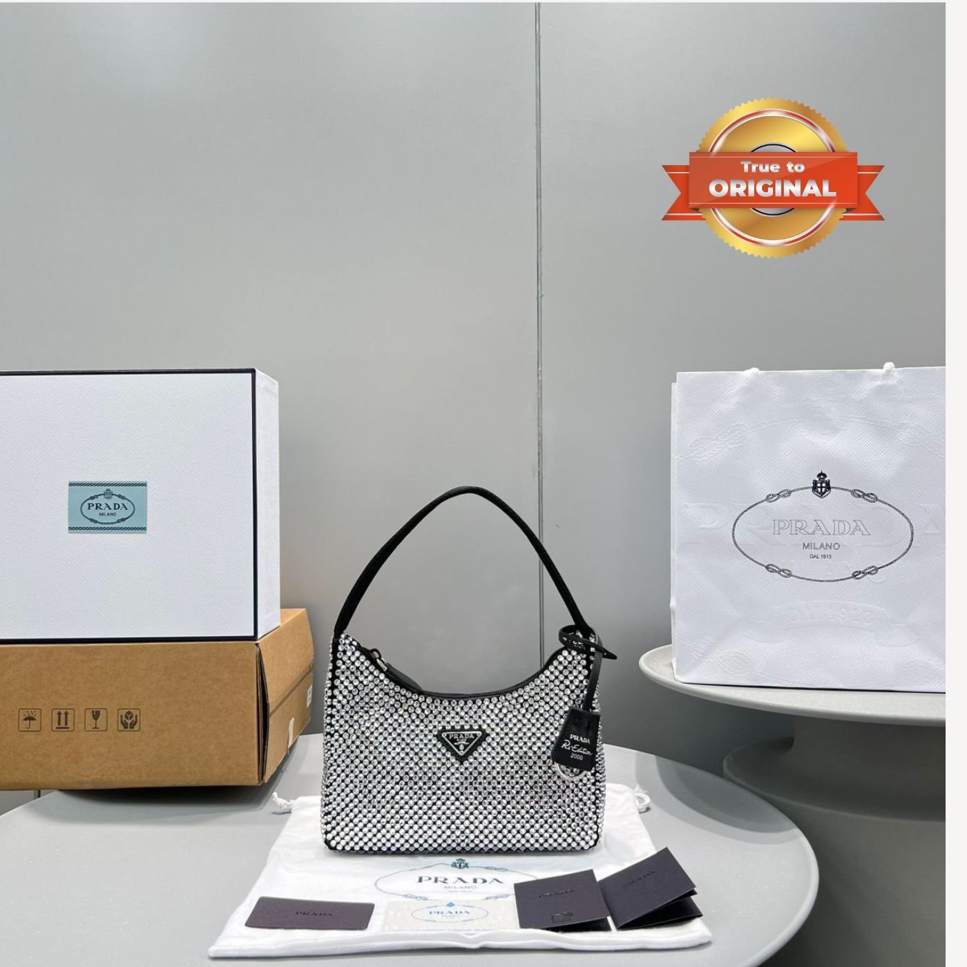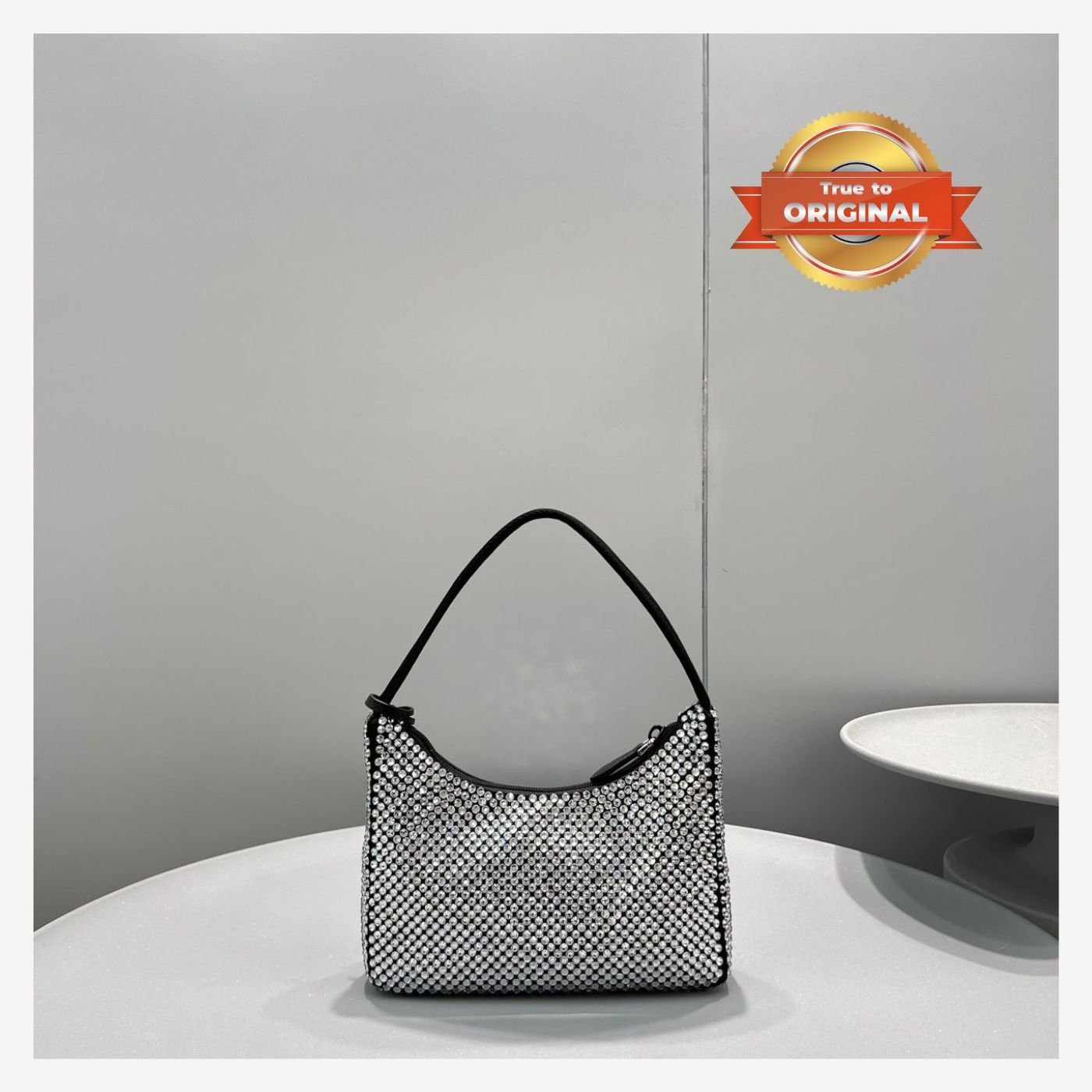 [True-to-ORIGINAL] Prada Satin Mini-Bag With Crystals Silver For Women 8.6in/22cm 1BC515_2AWL_F0T7O_V_OOO