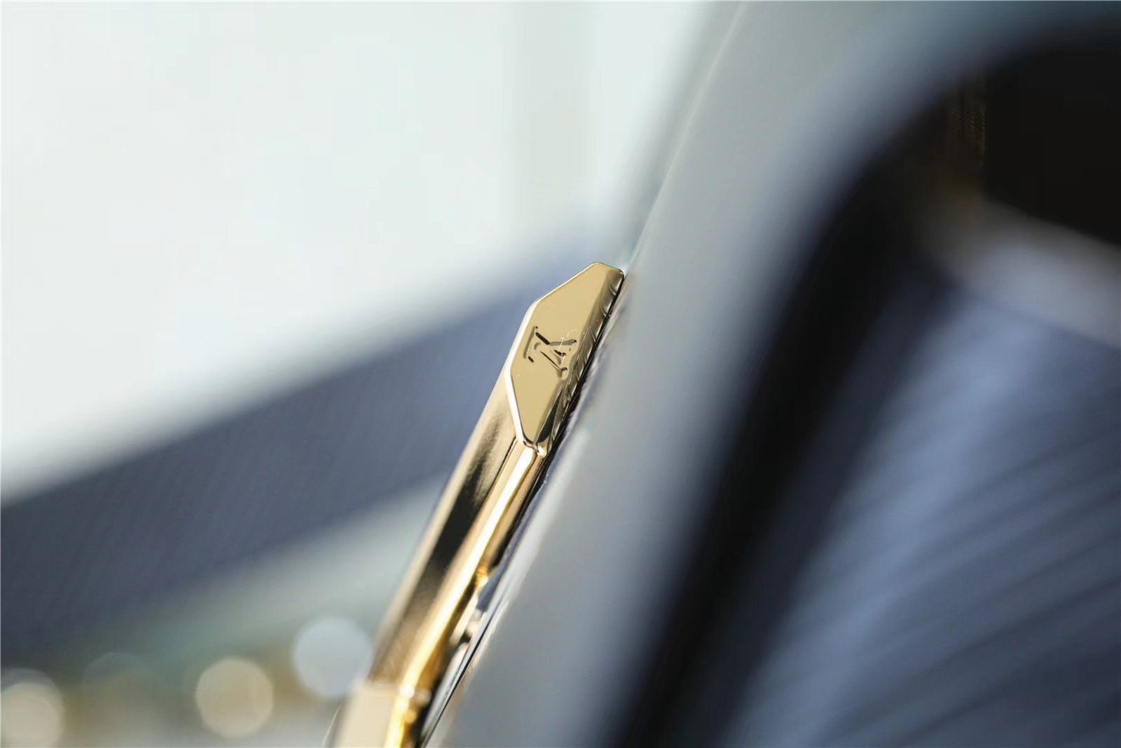 - Gold-color hardware